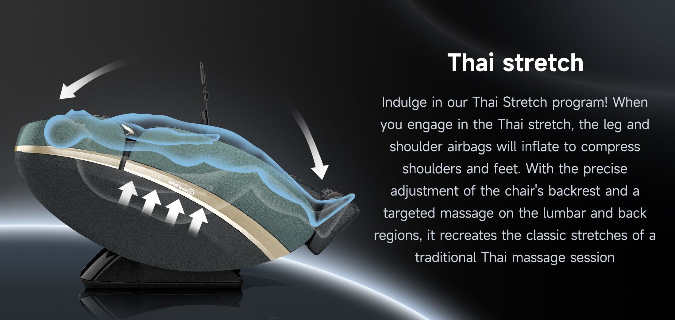 4D Thai stretch massage chairs can mimic the gentle stretching and folding of the body, reminiscent of Thai massage, to enhance flexibility and circulation. This is achieved through a combination of roller movements and airbag inflations that simulate the stretches.