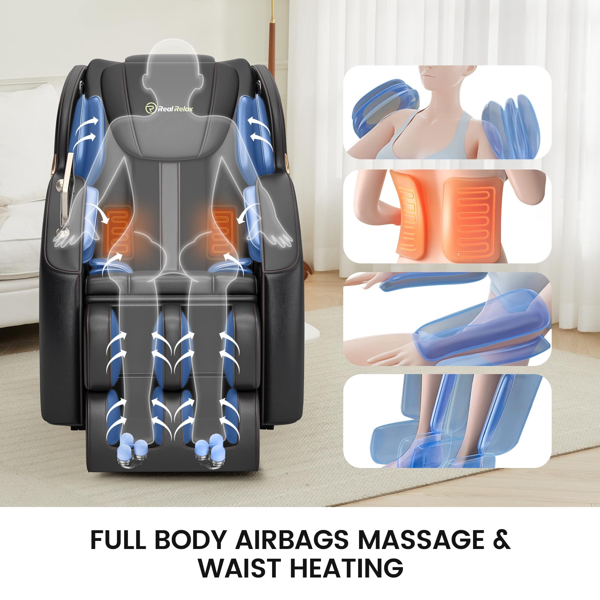 Kick back and relax with Real Relax BS06 massage chair — the perfect way to ditch stress after a long day. It’s got these awesome rollers that work your neck, back, and waist, plus 20 airbags that give you a nice, gentle squeeze all over. The heated back and calves keep you warm and help with sore muscles, and the zero gravity setting makes you feel almost weightless. You can even play your favorite music through Bluetooth while you unwind. If you want to bring that spa feeling home without breaking the bank, the BS06 is the way to go!