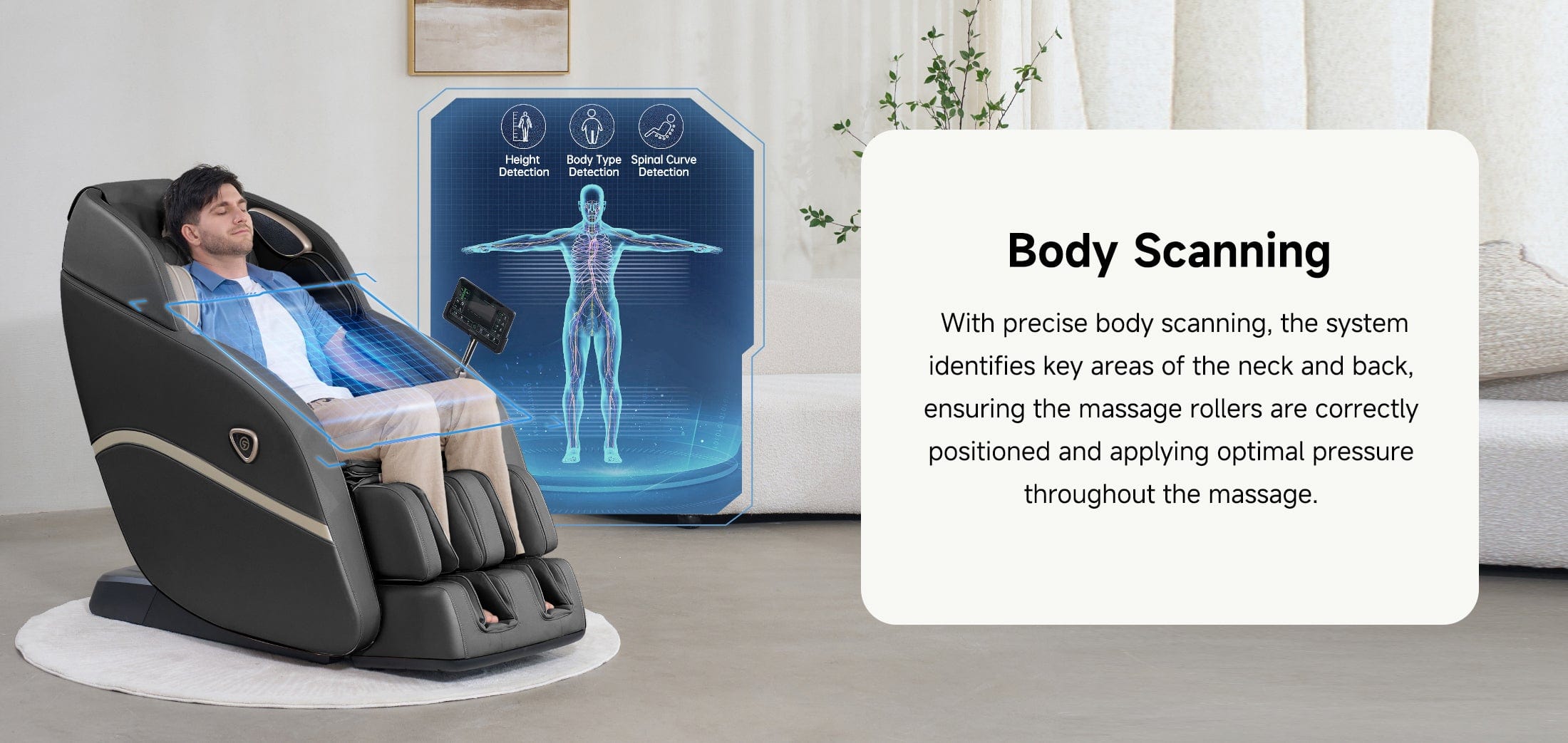 Personalized Experience. The body scan feature allows the chair to tailor the massage to your exact body shape and needs. It's like having a massage therapist who knows exactly where to apply pressure and how deep to go.