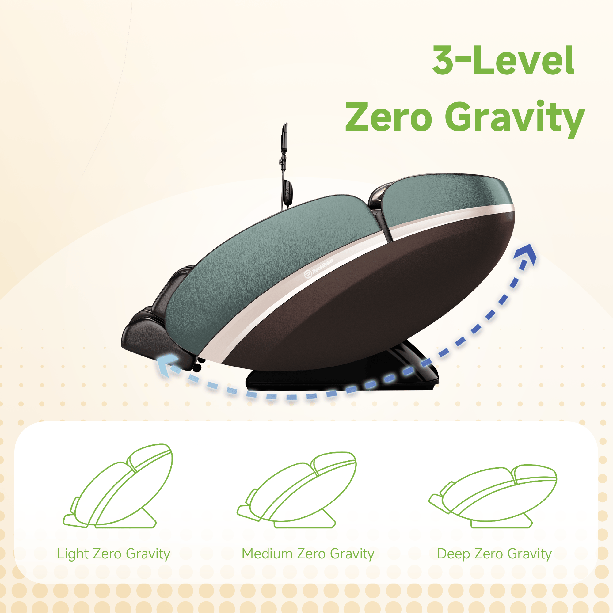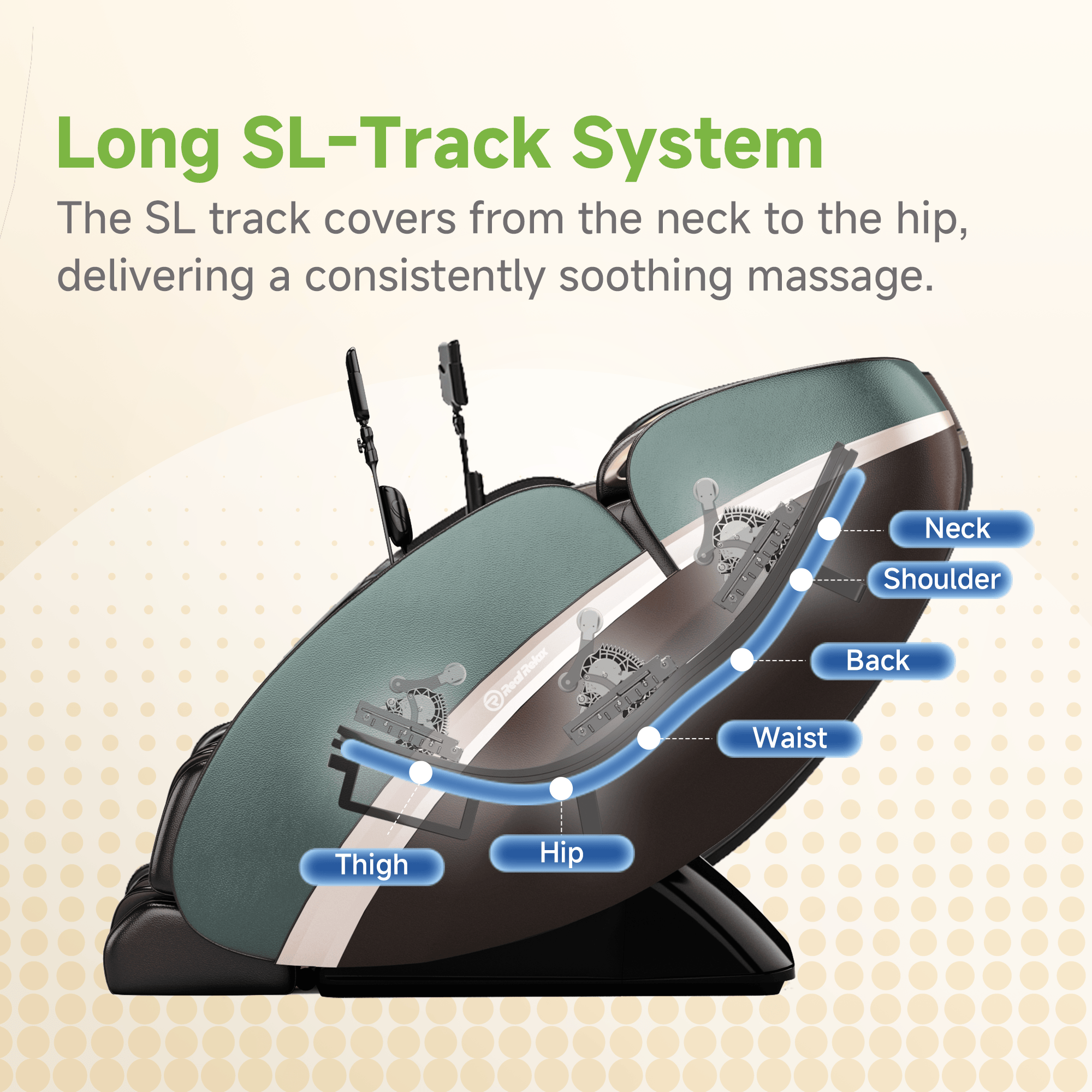 Real Relax massage chair's professional 4D massage mechanism can deliver a comprehensive massage multidimensionally. Compared with the traditional 3D massage mechanism, the specialized motor can extend the rollers outward for 1.1-2.5 inches, achieving deeper massage experience such as Shiatsu and Thai lumbar stretching.