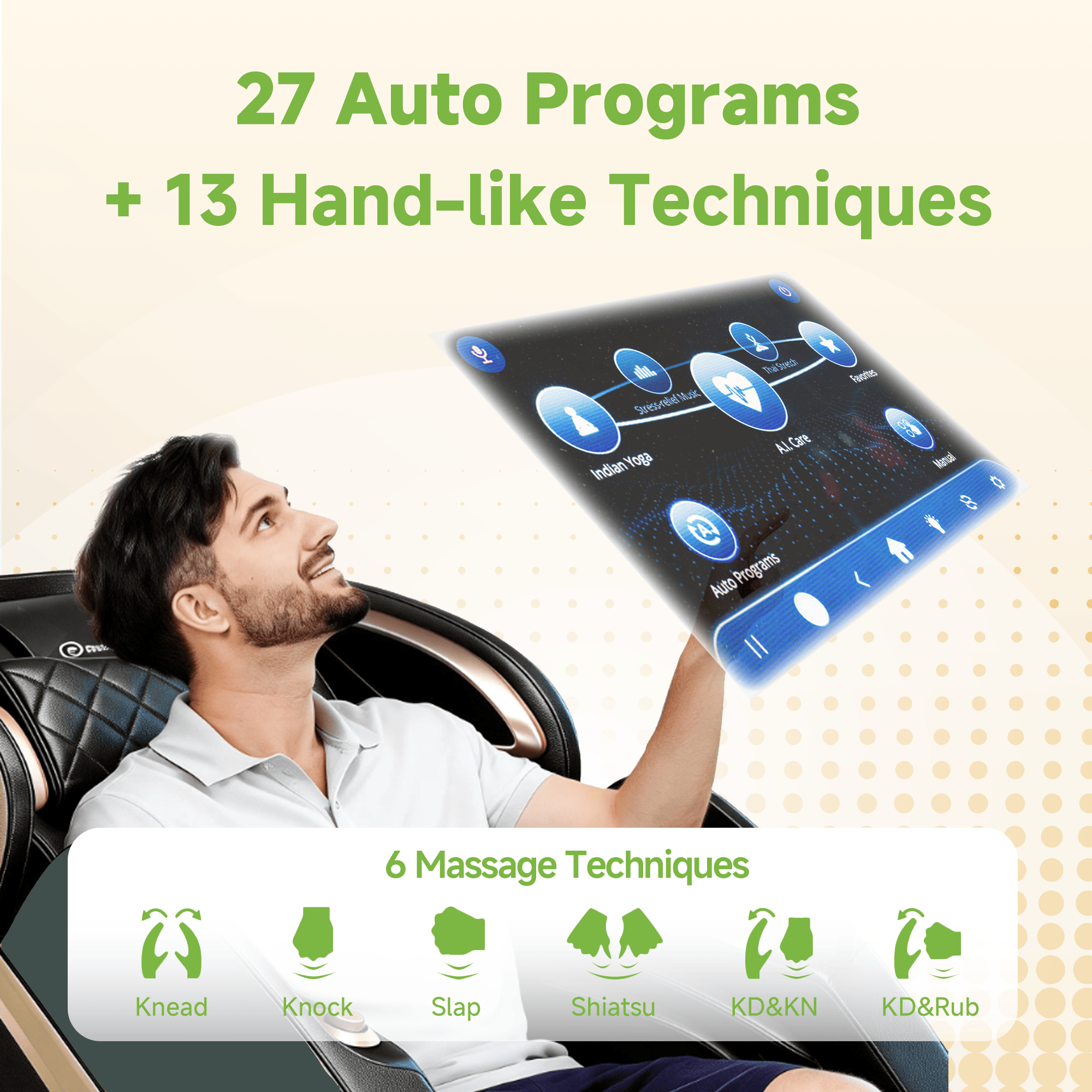 The intelligent massage mechanism, combined with a smart full-point muscle fatigue monitoring system, can achieve comprehensive adjustments with 5 intensity levels, targeting 7 body areas, 3 roller widths, and 6 massage techniques. It provides an intelligently customized massage experience tailored to the physical conditions of different individuals.