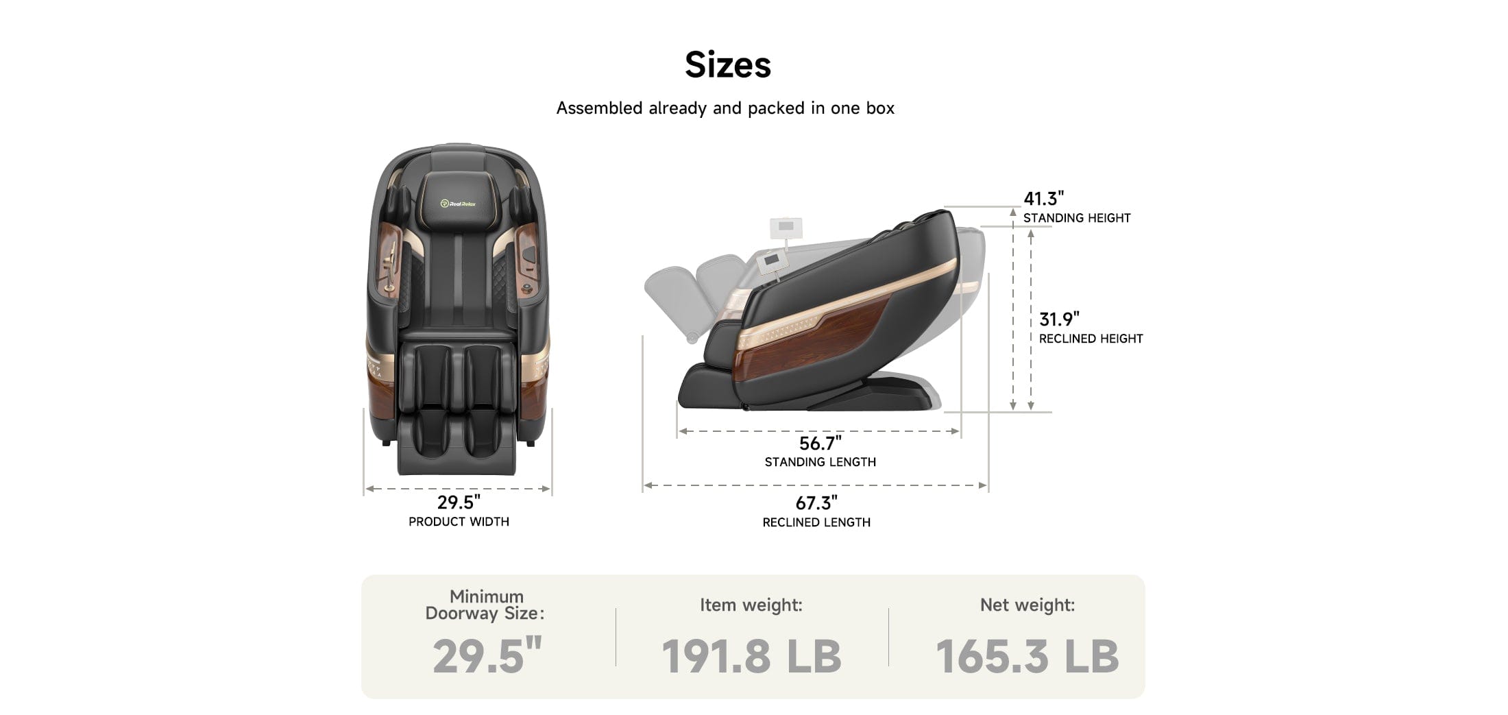 ergonomic design with the principles of zero-gravity and the comfort of a luxurious seat. By simulating the feeling of weightlessness, it allows users to experience a massage in a state of complete relaxation, free from external pressures.